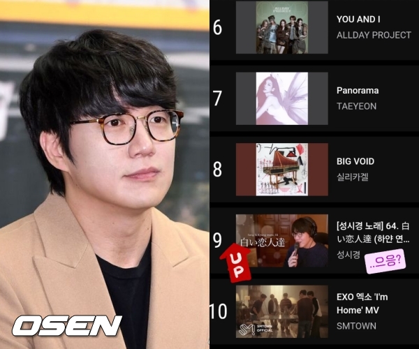 [OSEN=하수정 기자] 가수 성시경이 부른 '하얀 연인들'이 음원 차트 역주행을 하면서 순위가 오르고 있다. 성시경은 15일 "뭐야 왜 계속 올라..으응?" "UP"이라는 글과