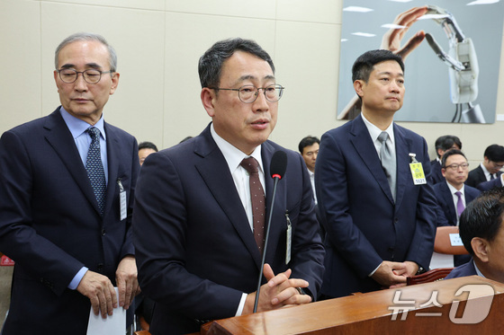 김영섭 KT 대표왼쪽부터, 유영상 SK텔레콤 대표, 홍범식 LG유플러스 대표가 일 서울 여의도 국회 과학기술정보방송통신위원회에서 열린 정보통신산업진…