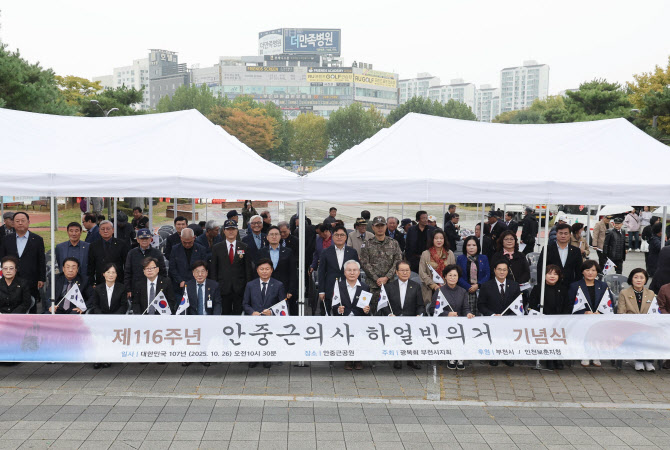 [부천=이데일리 이종일 기자] 부천시는 지난 26일 부천 원미구 안중근공원에서 안중근 의사 의거 제116주년 기념식을 열었다고 28일 밝혔다. 이번 행사는 광복 80주년을 맞아 1