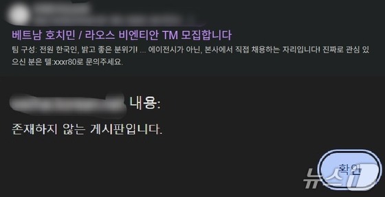 한 한인회 사이트에 개제된 해외 취업 유인 광고글. 검색 엔진에서는 확인할 수 있지만 웹사이트에선 지워진 상태다.캄보디아를 비롯한 동남아 지역에서 한국인을 포함한…