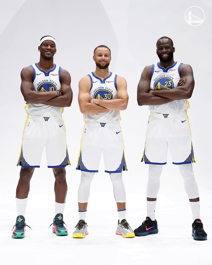 (왼쪽부터) 지미 버틀러, 스테픈 커리, 드레이먼드 그린 (MHN 조건웅 인턴기자) 골든스테이트 워리어스가 시즌 개막을 앞두고 지미 버틀러와 모지스 무디의 부상으로 전력 운용에 차