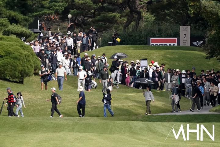 23일 열린 제네시스 챔피언십 1라운드에서 선수와 갤러리가 코스를 이동하고 있다. (MHN 천안, 김인오 기자) 24일 충남 천안에 있는 우정힐스 컨트리클럽이 이른 아침부터 열기로