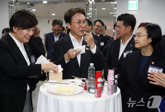 김민석 국무총리가 일 오후 경남 밀양 부북면 삼양식품 밀양공장을 방문해 불닭볶음면을 시식하고 있다. ../뉴스 News 윤일지 기자…