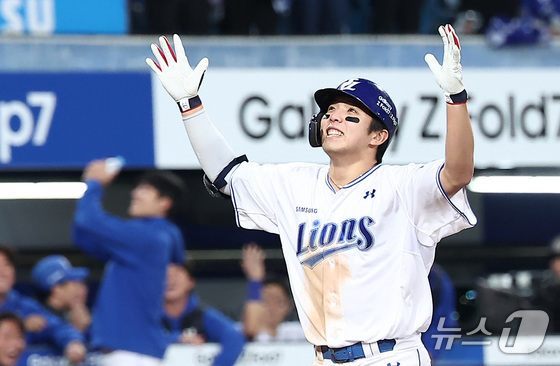 일 대구삼성라이온즈파크에서 열린 신한 SOL뱅크 KBO 포스트시즌 플레이오프 차전 한화 이글스와 삼성 라이온즈의 경기, 삼성 김영웅이 회말 사 ,루…