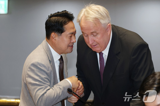 지난 월 일 당시 국민의힘 당대표 후보인 장동혁 의원이 서울 여의도 국회에서 열린 의원총회에서 인요한 의원과 대화하고 있는 모습. ../뉴스 copy…