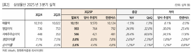 [이데일리 권오석 기자] 한화투자증권이 삼성물산(028260)에 대해 투자의견 ‘매수’, 목표주가를 기존 22만 5000원에서 27만원으로 상향한다고 29일 밝혔다. 송유림 한화투