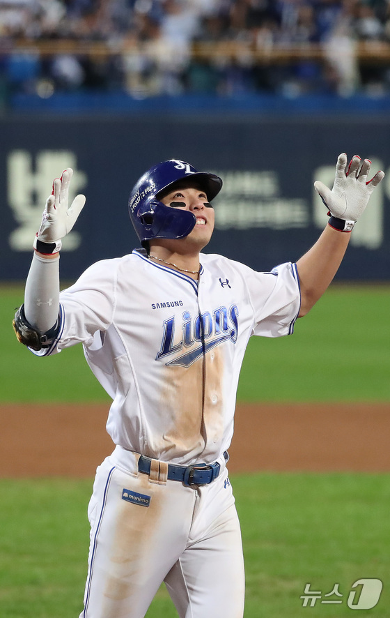일 오후 대구 삼성라이온즈파크에서 열린 프로야구 신한 SOL뱅크 KBO 포스트시즌 플레이오프 차전 삼성 라이온즈와 한화 이글스의 경기, 삼성 김영웅이 회…