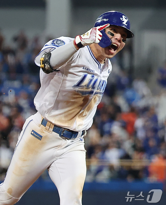 일 오후 대구 삼성라이온즈파크에서 열린 프로야구 신한 SOL뱅크 KBO 플레이오프 차전 한화 이글스와 삼성 라이온즈의 경기, 삼성 김영웅이 회말 사 …