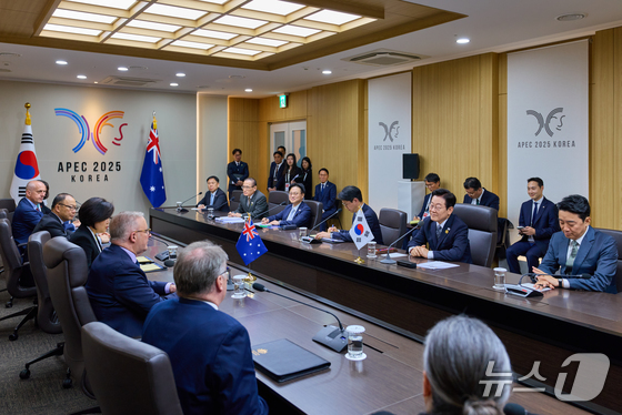 이재명 대통령과 앤소니 알바니지 호주 총리가 일 경북 경주 APEC 정상회의장에서 한-호주 정상회담을 하고 있다. 대통령실 제공. 재판매 및 DB 금지…