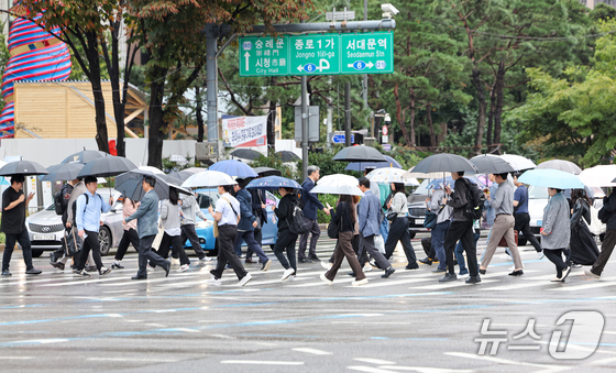 전국 대부분 지역에 비가 내리는 일 서울 종로구 세종대로 사거리에서 우산 쓴 시민들이 발걸음을 옮기고 있다. ../뉴스 News 이호윤…
