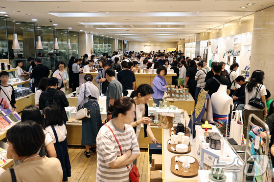 서울 용산구 국립중앙박물관 공식 굿즈 매장 '뮷즈샵'을 찾은 관람객들/뉴스 News 구윤성 기자국립중앙박물관이 올해 관람객 만 명을 돌파하며…