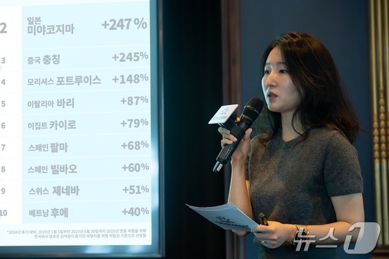 제시카 민 스카이스캐너 여행 전문가가 일 오전 서울 중구 레스케이프호텔에서 '트래블 트렌드 '를 발표하고 있다.스카이스캐너 제공…