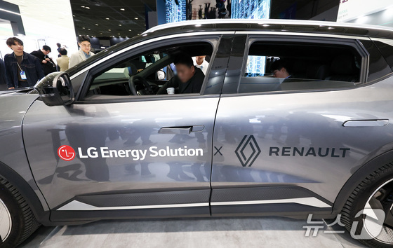 11일 서울 코엑스에서 열린 인터배터리 2026에서 LG에너지솔루션 부스를 찾은 사람들이 LG에너지솔루션 배터리를 탑재한 르노 전기차를 살펴보고 있다. 2026.3.11…
