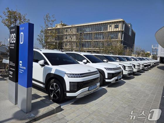 현대차그룹의 제주도 V2G 실증 서비스 현장에서 전기차들이 양방향 충전기에 연결돼 실제 충·방전을 통해 전력을 주고 받고 있다.현대차그룹 제공미…