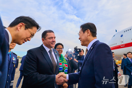 이재명 대통령이 지난 17일 주요 20개국G20 정상회의 참석을 계기로 아프리카와 중동 등 4개국 순방을 위해 경기 성남 서울공항에 도착, 환송객들과 …