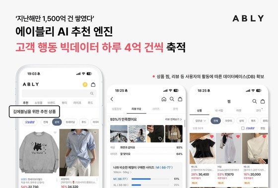 에이블리 제공스타일커머스 플랫폼 에이블리가 하루 평균 4억 건의 고객 행동 빅데이터가 축적된다고 23일 밝혔다.고객 행동 빅데이터란 노출, 클릭…