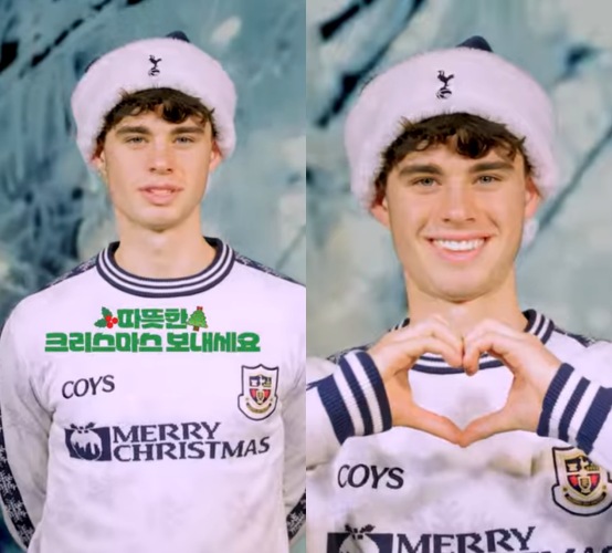 "따뜻한 크리스마스 보내세요" 치명적 4초 한국어 메시지, 토트넘 팬들 '녹았다'