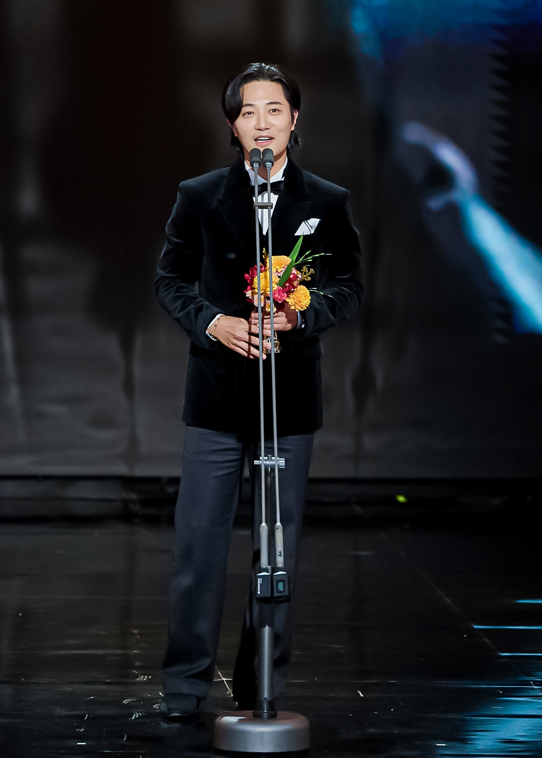 배우 진구가 30일 오후 서울 상암 MBC신사옥 미디어센터에서 열린 2025 MBC 연기대상에 참석해 베스트캐릭터상 수상 소감을 말하고 있다. iMBC연예 고대현 | 사진 MBC