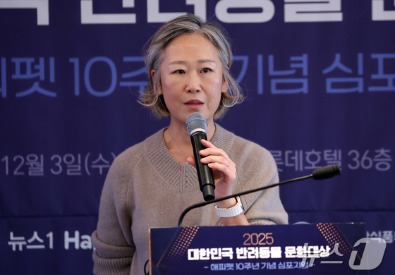이영희 서울대 교수가 3일 서울 중구 롯데호텔에서 열린 해피펫 10주년 심포지엄에서 기조연설을 하고 있다. 2025.12.3/뉴스1 News1 김명섭 기자…