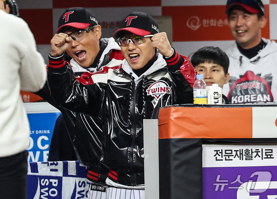 일 대전 한화생명볼파크에서 열린 프로야구 신한 SOL뱅크 KBO 포스트시즌 한국시리즈 차전 LG 트윈스와 한화 이글스의 경기, LG 염경엽 감독이 회초 …
