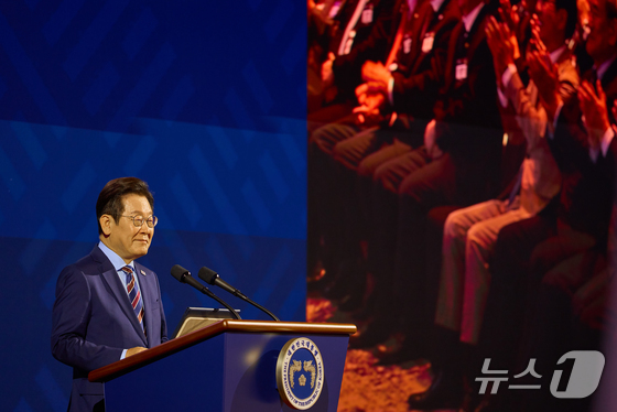 이재명 대통령이 일 서울 광진구 그랜드워커힐서울 호텔에서 열린 제회 세계 한인의 날 기념식에서 기념사를 하고 있다. 대통령실 제공. 재판매 및 DB 금지…
