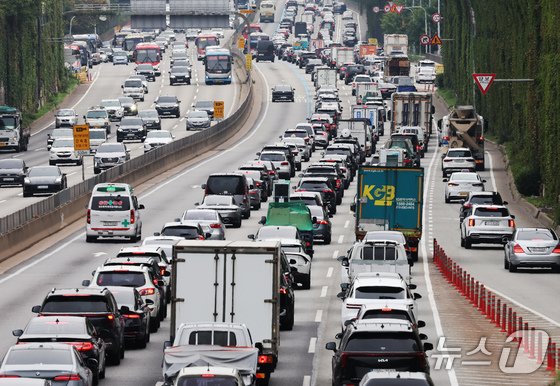 추석 연휴를 하루 앞둔 일 오후 서울 서초구 경부고속도로 잠원IC 부산방향이 귀성길을 떠나는 차량으로 정체되고 있다. ../뉴스 News …