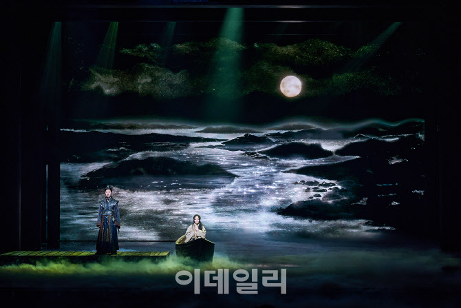 [이데일리 장병호 기자] 국립극장 해오름극장 무대 위에 한 폭의 수묵화가 펼쳐졌다. 뮤지컬 ‘몽유도원’의 1막 마지막 넘버 ‘어이해 이러십니까’의 한 장면. 왕 때문에 사랑하는 아
