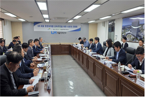 [이데일리 최정희 기자] 한국토지주택공사(LH)는 5일 LH 서울지역본부에서 공공재개발 사업 신속 추진을 목표로 시공사 대상 간담회를 개최했다고 밝혔다. 이번 간담회는 공공정비사업