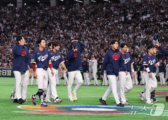 7일 오후 일본 도쿄돔에서 열린 2026 월드베이스볼클래식 C조 조별리그 대한민국과 일본의 경기. 일본에 8대6으로 패배한 대한민국 선수들이 그라운드를 나서고 있다. &…