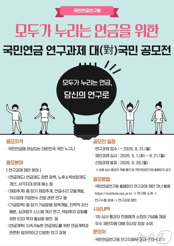 국민연금, '연구과제 대국민 공모전' 개최…우수작 정책에 반영
