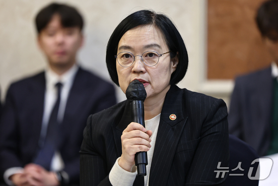 한성숙 중소벤처기업부 장관이 26일 서울 영등포구 켄싱턴호텔에서 열린 중소기업 기술탈취 신문고 출범식 및 간담회에서 인사말을 하고 있다. 2026.3.26 …