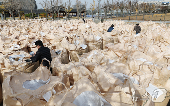 17일 경기 평택시 오성면 평택시농업기술센터에서 2025년산 공공비축미 수매가 진행되고 있다. 2025.11.17/뉴스1 News1 김영운 기자올해 …