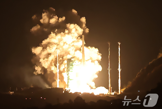 한국형 발사체 누리호KSLV-Ⅱ가 27일 새벽 전남 고흥군 나로우주센터에서 4차 발사를 맞아 우주로 날아오르고 있다. 차세대중형위성 3호1기&…