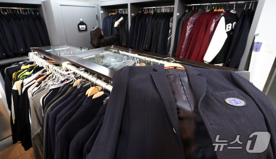 오는 20일 '교복 제도 관련 부처별 대응 방안'을 주제로 정부 합동 회의를 앞둔 19일 서울 송파구 나눔교복매장에서 관계자가 교복을 정리하고 있다. 나눔교복매장은 송파…