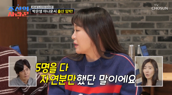 정주리가 오형제 모두를 자연분만으로 출산했다고 밝혔다. 26일 방송된 TV CHOSUN '조선의 사랑꾼'에는 방송인 박은영이 정주리, 제이쓴과 만났다. 이날 정주리는 "다섯 명을