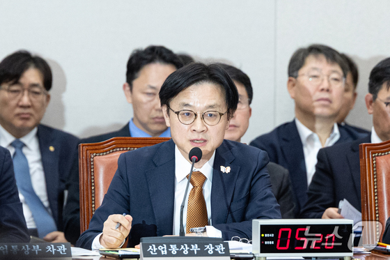 김정관 산업통상부 장관이 일 서울 여의도 국회에서 열린 산업통상자원중소벤처기업위원회 산업통상부 등에 대한 국정감사에 출석해 의원 질의에 답변하고 있다. .…