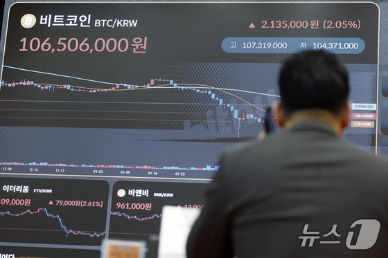 5일 서울시 강남구 빗썸라운지 강남점 전광판에 가상자산 비트코인 시세가 나오고 있다. 2026.3.5 뉴스1 박정호 기자가상자산디지털자산…