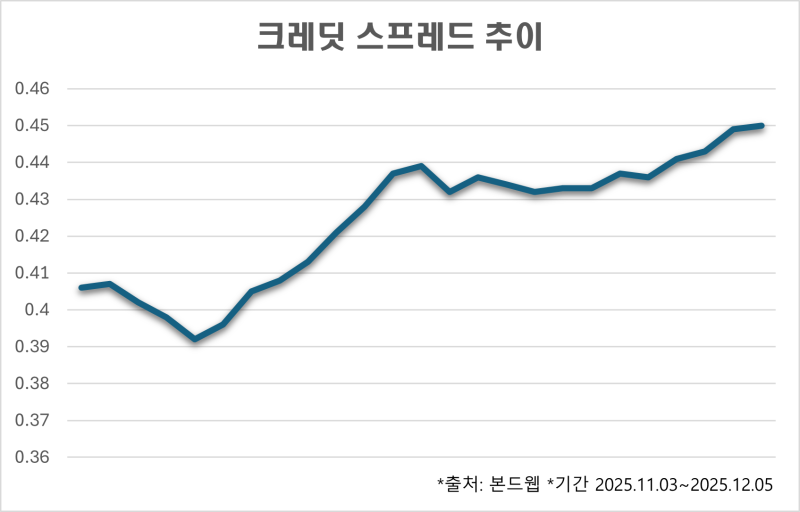 [이데일리 마켓in 김연서 기자] 회사채 투자심리를 가늠할 수 있는 크레딧 스프레드가 최근 확대되고 있다. 연내 금리 인하 가능성이 사실상 사라지면서 크레딧 투자심리가 위축된 영향