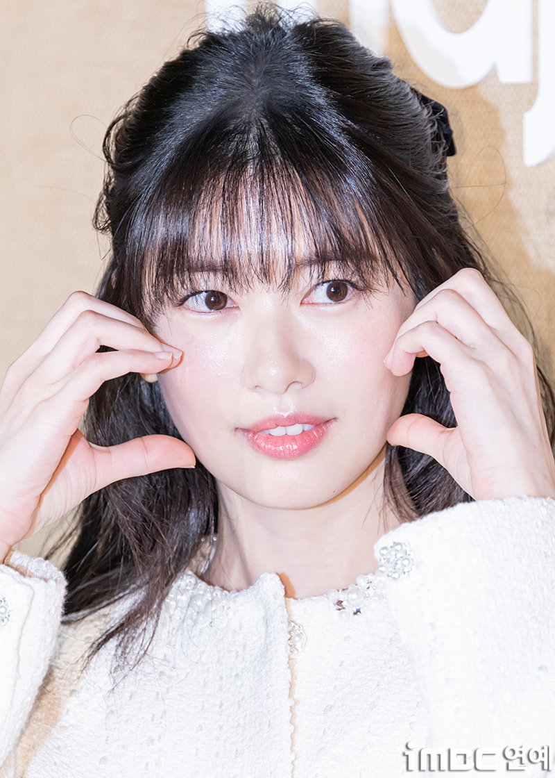 배우 정소민이 19일 오전 서울 한남동에 위치한 파리 컨템포러리 여성 패션 브랜드 프레젠테이션 행사에 참석해 포즈를 취하고 있다. 이날 정소민은 시스루 뱅 앞머리에 머리를 묶은 포
