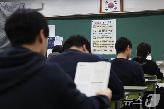 2026년 3월 전국연합학력평가일인 24일 오전 서울 광진구 광남고등학교에서 수험생들이 시험 준비를 하고 있다. 2026.3.24 뉴스1 사진공동취재단…