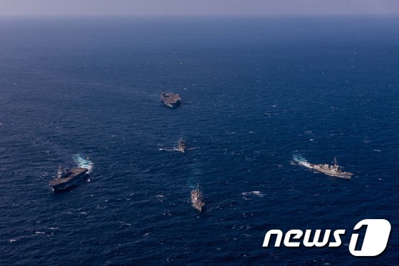 2023년 한미일 함정이 10월 10일 제주 동남방 공해상에서 대해적 훈련 실시하고 있다. 해군 제공2023.10.10/뉴스1해양수산부…
