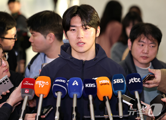 야구 국가대표팀 김도영이 9일 오전 인천국제공항 제1여객터미널에서 월드베이스볼클래식WBC 대비 1차 전지훈련을 위해 사이판으로 출국하기 전 취재진의 질…