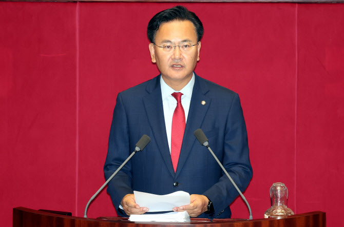 유상범 국민의힘 원내수석부대표가 1일 서울 여의도 국회에서 열린 '용문~홍천 광역철도 정책토론회' 환영사하고 있다. 2025.10.1/뉴스1 News1 이승…