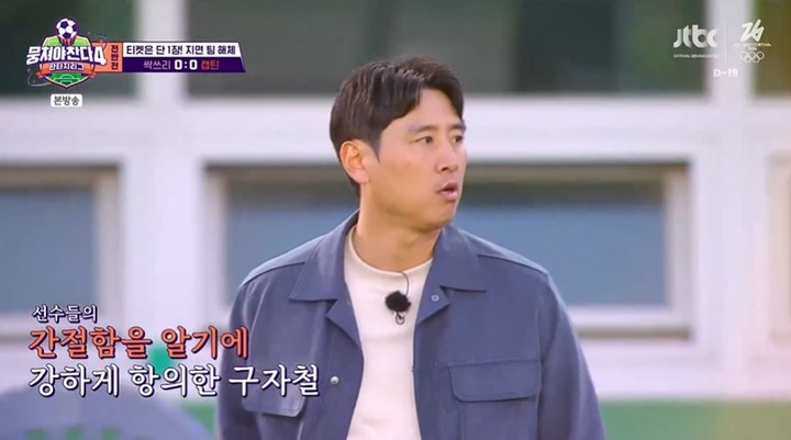 (MHN 장창환 기자) '싹스리UTD'의 구자철 감독이 분노했다. 18일 방송된 JTBC 스포츠 예능 '뭉쳐야 찬다4' 40회에서는 플레이오프 진출 티켓을 빼앗으려는 구자철 감독의