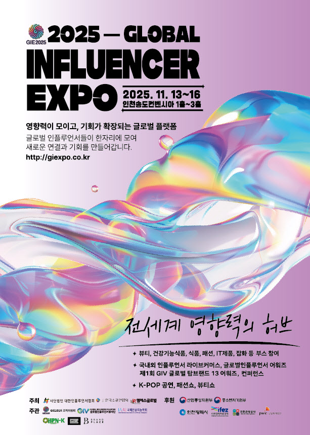 [인천=이데일리 이종일 기자] 인천시는 13~16일 송도컨벤시아에서 ‘2025 글로벌 인플루언서 엑스포(GIE 2025)’가 열린다고 11일 밝혔다. 이번 행사는 ㈔대한인플루언서협