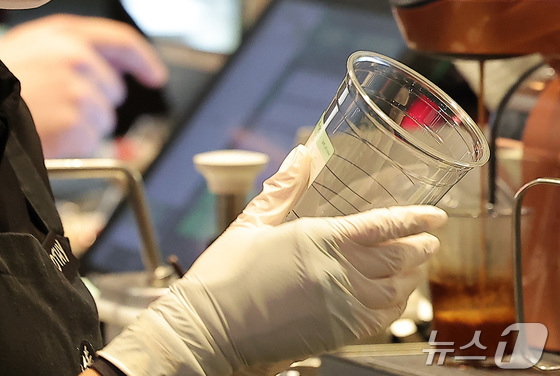 서울 시내 한 카페에서 직원이 일회용 플라스틱 컵을 정리하고 있다. 2025.12.18/뉴스1 News1 김성진 기자일회용 컵 사용 감축 방안의 하나…