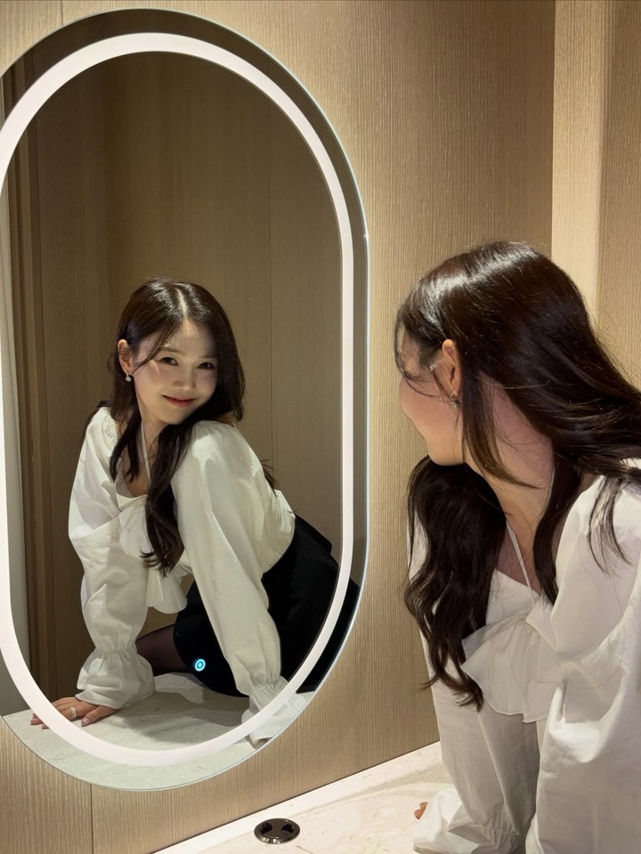 오마이걸 효정, 거울 앞 도발적 윙크…하얀 블라우스로 드러낸 청순美