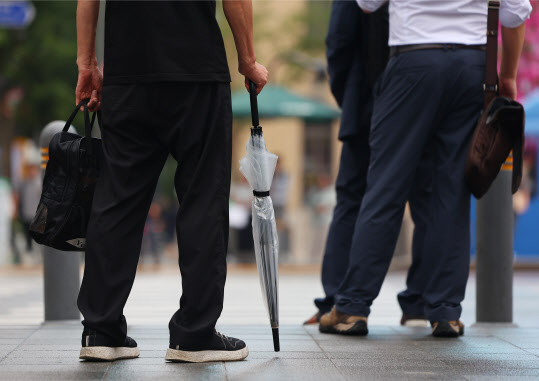 [이데일리 김국배 기자] 토요일인 18일 오전에는 전국 대부분 지역에 비가 내리겠다. 서울 광화문사거리에서 우산을 든 시민이 횡단보도 신호를 기다리고 있다. (사진=연합뉴스) 기상