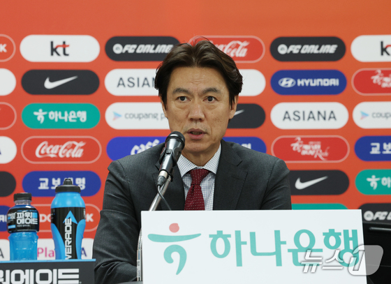 홍명보 축구 국가대표팀 감독이 16일 충남 천안시 서북구 코리아풋볼파크에서 A대표팀 3월 소집 명단을 발표하고 있다. 2026.3.16 뉴스1 김영운 기자…