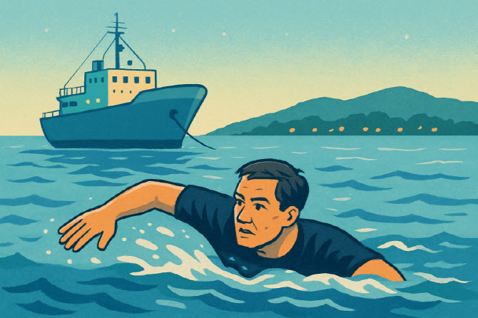 부산 바다에 '퐁당'... 2시간 30분 헤엄쳐 밀입국 '체력왕'
